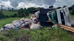 Caminhão caçamba tomba às margens da BR 163 em Cascavel