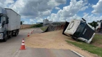 Carreta carregada com trigo tomba na BR-163 em Santa Tereza do Oeste