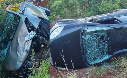 Acidente envolve ônibus e deixa dois carros capotados em Cascavel
