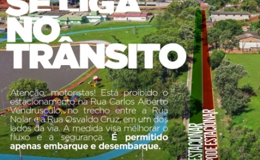 Sinalização proíbe estacionamento em trecho da Rua Carlos Alberto Vendrusculo, em Guaíra
