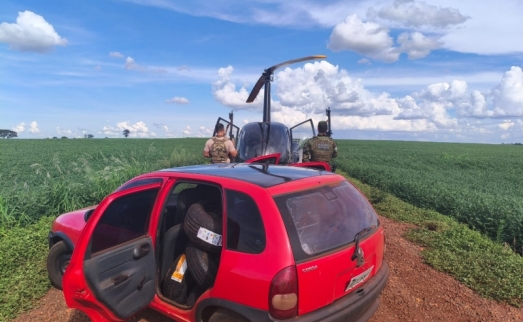 Com apoio de helicóptero, carro com cigaros e pneus contrabandeados é apreendido em Guaíra