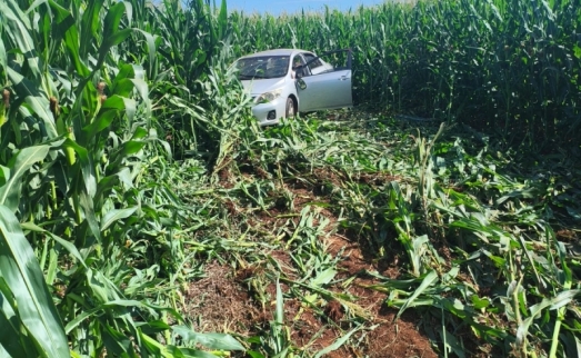 Carro com casal de idosos capota na BR-163 entre Guaíra e Mercedes