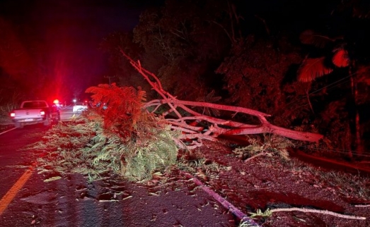 Árvore de grande porte cai, atinge veículo e interrompe energia na PR-317 em Santa Helena
