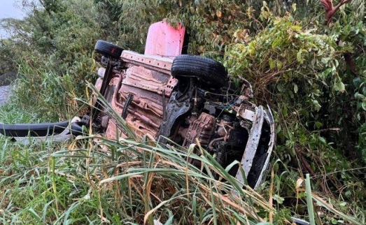 Capotamento impressionante durante chuva forte deixa motorista ferido em Santa Helena