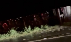 Caminhão tomba na BR-163 e porcos morrem a caminho do abate