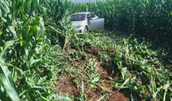 Carro carregado com agrotóxicos cai dentro de açude em fuga da PRF em Mercedes