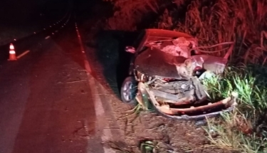 Capotamento deixa dois feridos em Guaíra e carro fica destruído