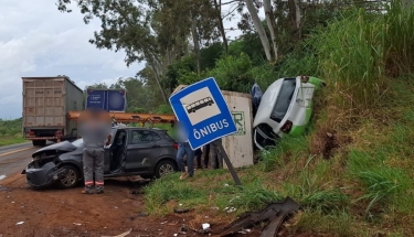Carros batem de frente na estrada rural entre Bela Vista e São Marcos