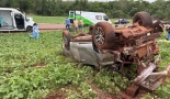 Carro fica destruído após bater em árvore e capotar na BR-163 em Toledo