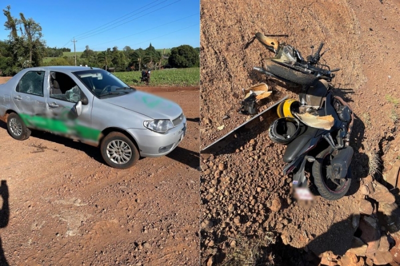 A colisão ocorreu quando o condutor do Siena fez uma conversão para acessar uma estrada rural. Cortou a frente da motocicleta, com placas paraguaias, e a colisão foi inevitável.