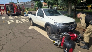A colisão envolvendo uma motocicleta Yamaha Neo 125 e uma picape Fiat Strada, com placa de Mercedes deixou uma jovem ferida.