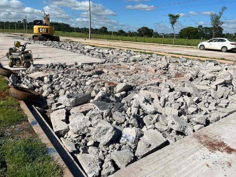 De acordo com a equipe técnica responsável pela obra, foi necessária a recomposição de um trecho de cerca de 65 metros da pista, que ainda se encontrava em fase inicial de execução e sem liberação para tráfego. As intervenções incluem a retirada total do concreto aplicado, limpeza da área, recomposição da armadura, aquisição de novos materiais, além de serviços de corte, dobra e montagem das estruturas antes da nova etapa de concretagem.