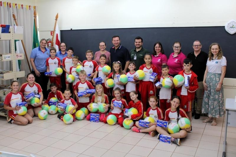Durante todo o ano, os alunos das escolas municipais juntaram lacres e levaram para as salas de aula. Para estimular a participação, cada criança que entregou uma garrafa pet cheia recebeu uma bola e uma caixa de chocolates.