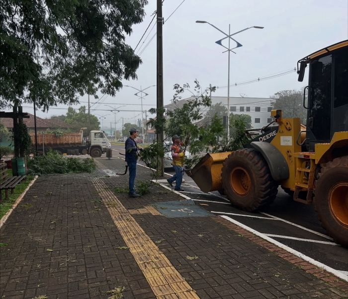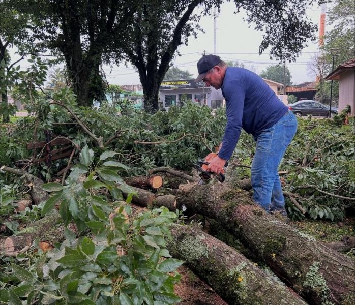 O serviço está concentrado, principalmente, na área central da cidade, com destaque para a região da Praça Willy Barth, onde ocorre a limpeza das vias, recolha de galhos, retirada de entulhos e corte de árvores que foram derrubadas pelos ventos.