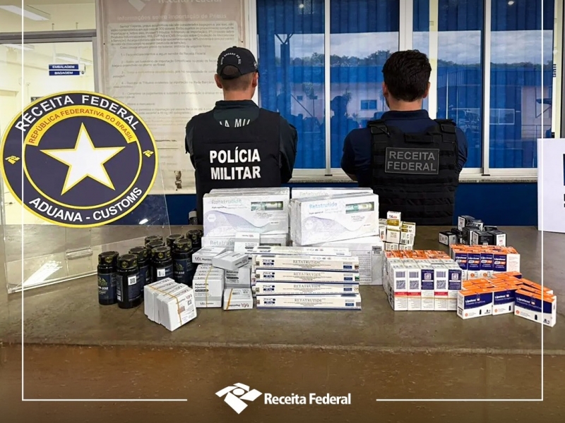 Entre os produtos apreendidos estavam itens voltados ao emagrecimento, anabolizantes e peptídeos, muitos deles sem aprovação sanitária ou com importação proibida ou restrita no Brasil.