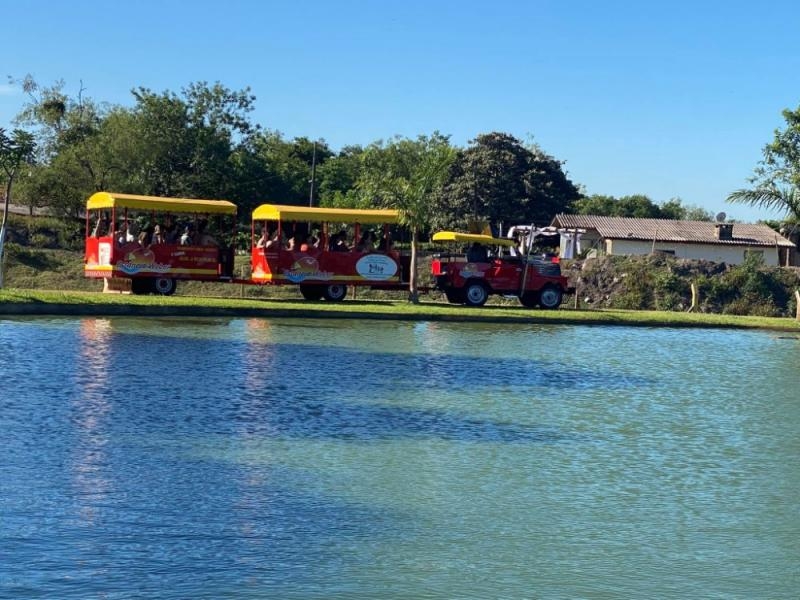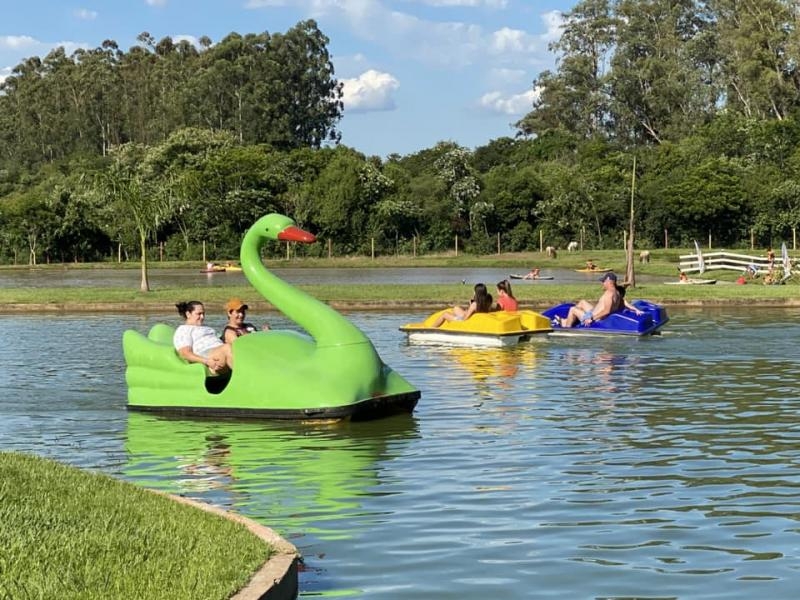 O local dispõe de chalés, casa, apartamentos, área de camping, pedalinho, caiaque, circuito radical, tirolesa, animais exóticos, piscina coberta com dois toboáguas, passeio de trenzinho, restaurante, churrasqueiras e muito mais (confira mais fotos abaixo).