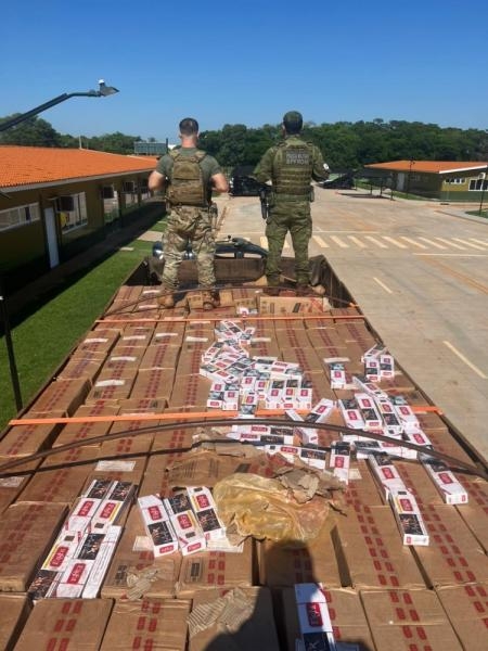 Na madrugada de sábado (22), Policiais Federais do NEPOM/PF e Policiais Militares do BPFRON apreenderam um caminhão carregado com cigarros em Guaíra.