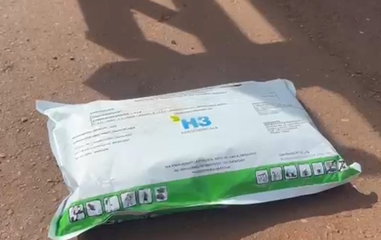 Durante a fiscalização, os agentes encontraram diversos pacotes de defensivos agrícolas escondidos dentro do tanque do caminhão.