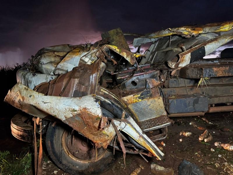 Segundo informações do Corpo de Bombeiros, mesmo com a destruição total do caminhão, o motorista sofreu apenas pequenas lesões, com suspeita de ferimento no braço direito.