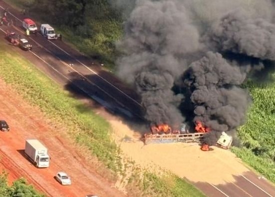 Segundo as informações apuradas no local, o caminhão incendiou após o impacto, o que exigiu uma força-tarefa para o controle das chamas e o atendimento às vítimas.