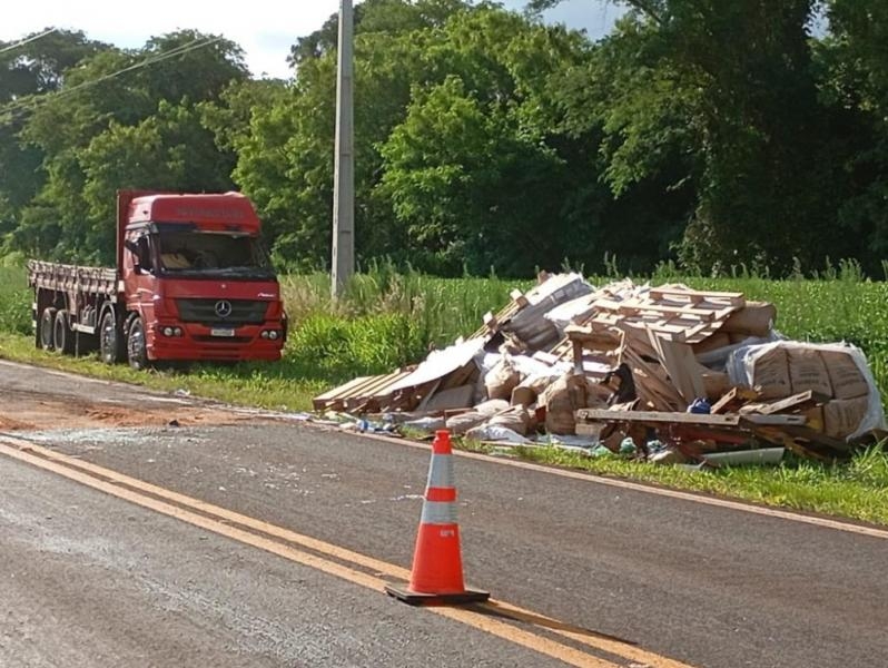 Um caminhão tombou na rodovia estadual PR-364 e deixou o motorista ferido na tarde de sábado (20), no município de Palotina.