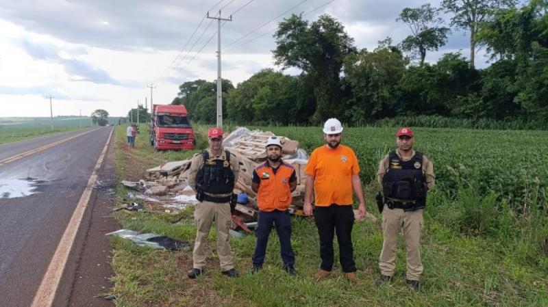 De acordo com as informações repassadas, o caminhão Mercedes-Benz Atego, emplacado em Cachoeiro de Itapemirim (ES), seguia pela PR-364 no sentido de Terra Roxa a Palotina quando, ao atingir o km 605,3, se envolveu sozinho na ocorrência e acabou parando tombado às margens da rodovia.