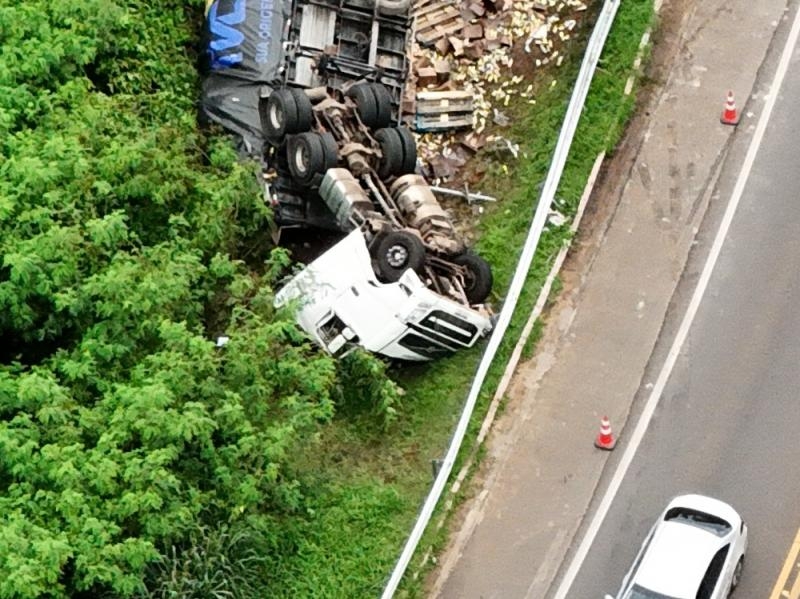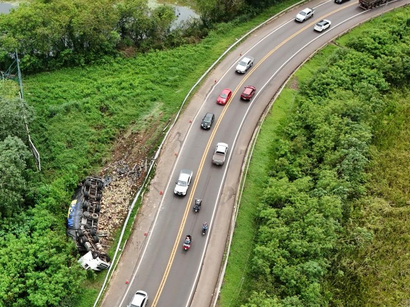 Conforme as informações, a vítima conduzia uma carreta Volvo FH carregada com óleo de soja pela BR-163, em direção ao Paraná, quando acabou tombando o veículo na curva de acesso à Ponte.
