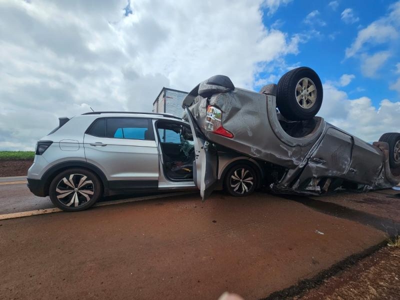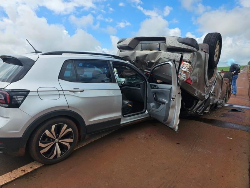 Um grave acidente de trânsito foi registrado na manhã desta segunda (03), na PR-317, entre Toledo e Assis Chateaubriand. Uma caminhonete com drogas capotou e atingiu um T-Cross.