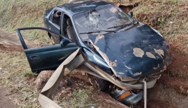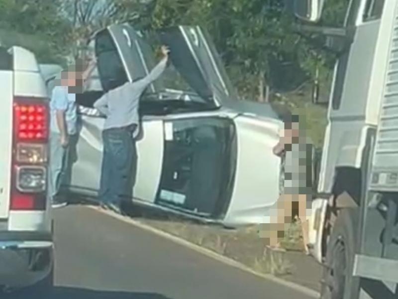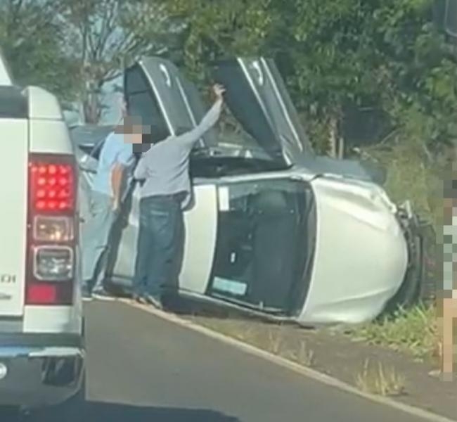Conforme as informações, um veículo sedan capotou na rodovia, proximidades de Vila Guarani.
