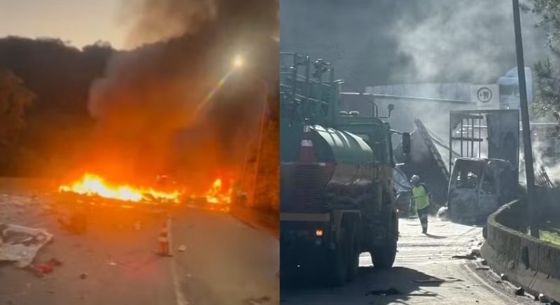 Segundo informações preliminares da Polícia Rodoviária Federal (PRF), o caminhoneiro que iniciou o engavetamento morreu e ao menos 14 pessoas ficaram feridas.