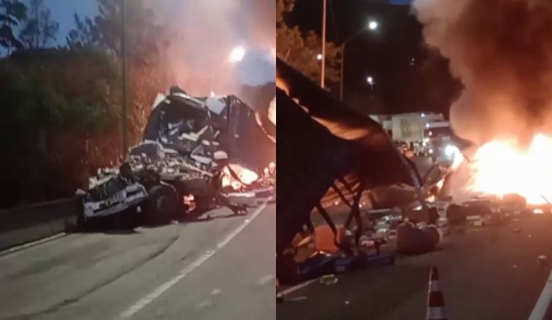 O bloqueio no trânsito inicia no km 662, em frente à PRF de Tijucas do Sul. Equipes da PRF, da concessionária Arteris Litoral Sul e do Corpo de Bombeiros estão atuando no local.
