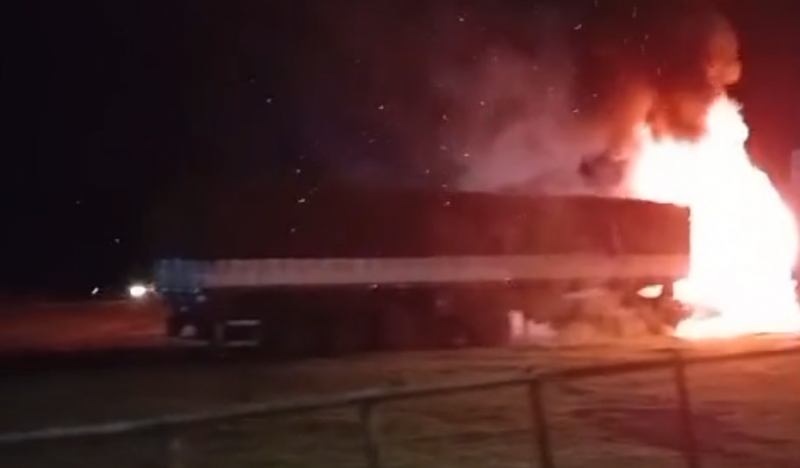 Conforme as informações, o veículo de carga seguia em direção ao Paraná quando as chamas se iniciaram na cabine do veículo e se propagou para o reboque.