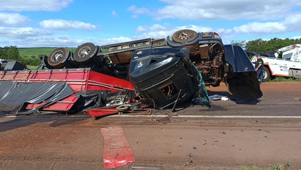 A carreta, que estava vazia no momento do acidente, ficou atravessada sobre a pista no sentido a Cascavel, bloqueando completamente o tráfego.