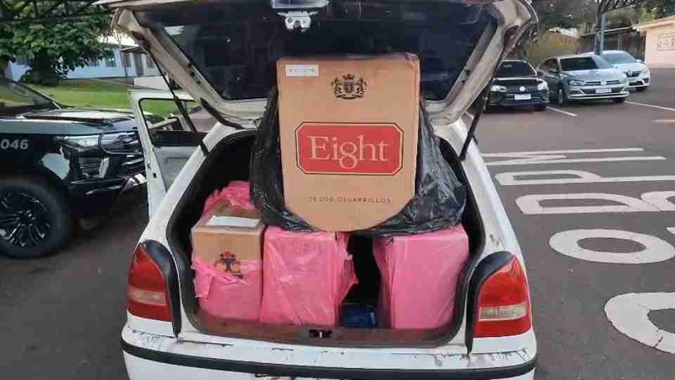 Dentro do veículo, os policiais encontraram aproximadamente 600 pacotes de cigarros de origem estrangeira, das marcas Eight e Classic.