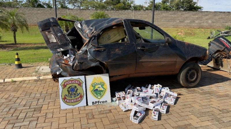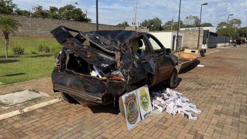 Após aproximadamente 5 quilômetros de perseguição, o carro capotou. O motorista ainda tentou escapar a pé, mas foi detido pelos policiais. Dentro do veículo, foram encontradas seis caixas de cigarros contrabandeados, cerca de 300 maços.