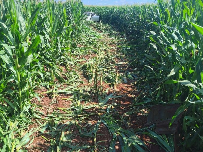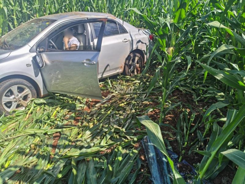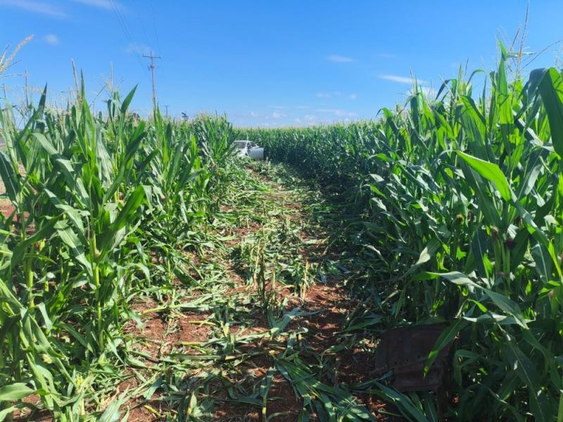 Desgovernado, o veículo saiu da pista e invadiu um milharal, vindo a capotar.