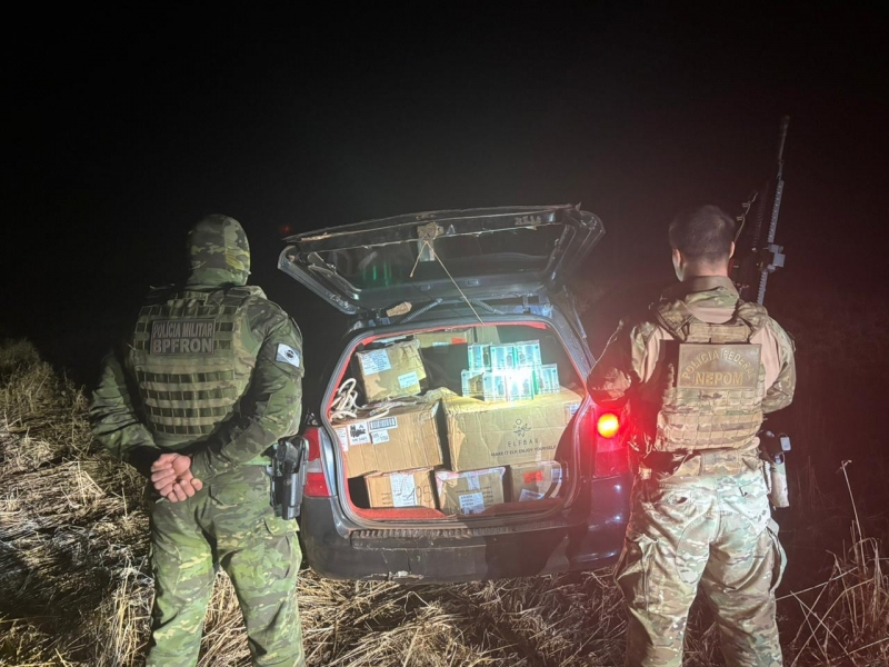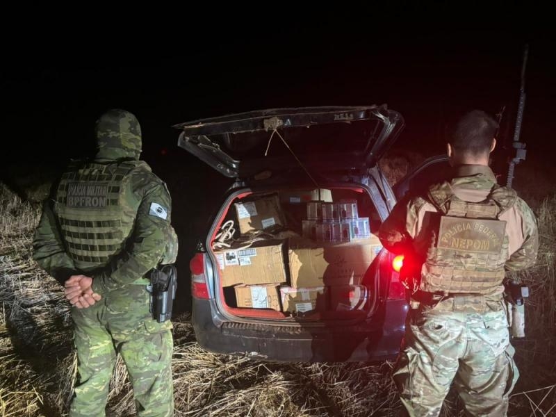 No carro apreendido, foram encontradas aproximadamente 28 caixas de cigarros eletrônicos, que seriam destinadas ao crime organizado da região.