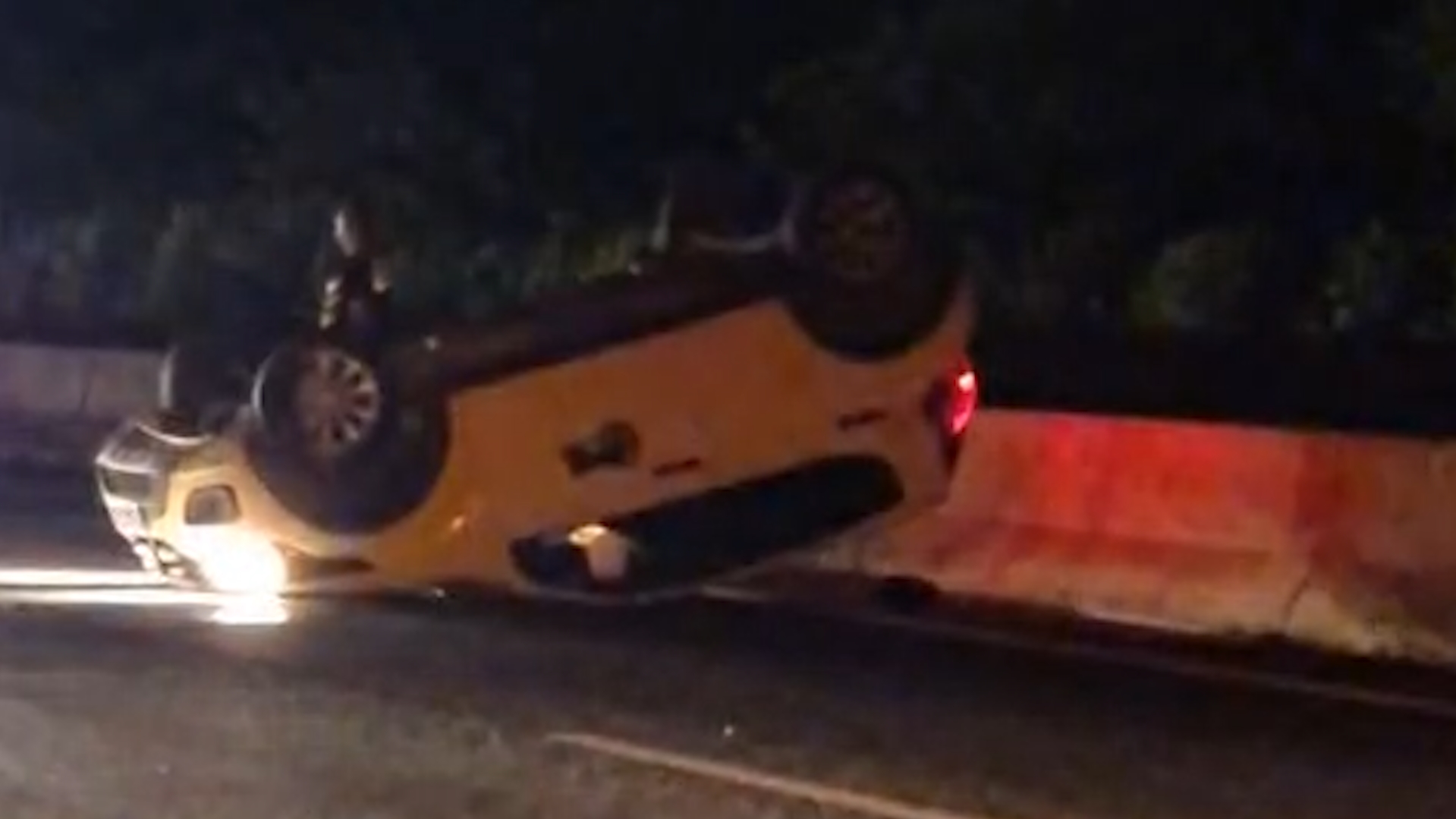 O Fiat/Uno foi localizado após se envolver em um acidente com capotamento na rodovia BR-163, proximidades de Lindoeste.