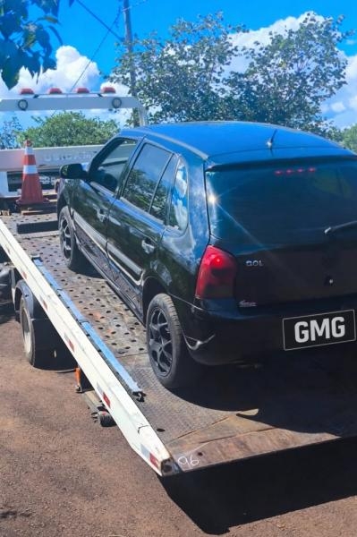 O veículo foi recolhido com apoio de guincho e encaminhado à Delegacia de Polícia Civil.