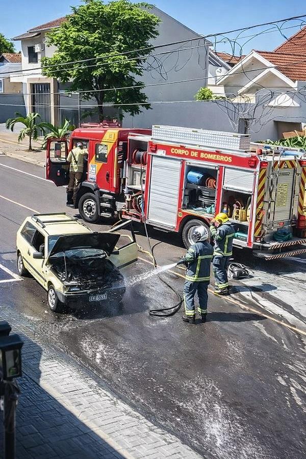 O incidente envolveu um automóvel Fiat Uno. De acordo com informações obtidas no local, o fogo teria começado no compartimento do motor.