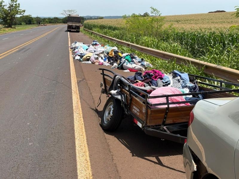 A PRF também esteve presente, controlando o trânsito e registrou a ocorrência. A carga de roupas que o reboque do Corrola transportava ficou espalhada às margens da BR-163.
