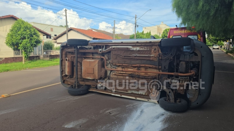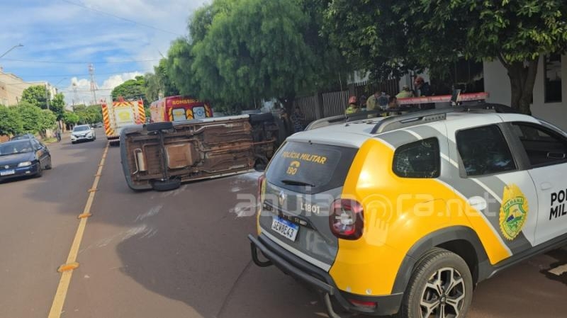 De acordo com informações, o Fiorino seguia pela Rua Espírito Santo em direção ao centro da cidade. O Palio estava na Rua Colombo, vindo da Avenida Rio Grande do Sul, quando houve a colisão. Com o impacto, o pneu do Fiorino bateu no ‘tachão’ no meio da pista e acabou capotando.