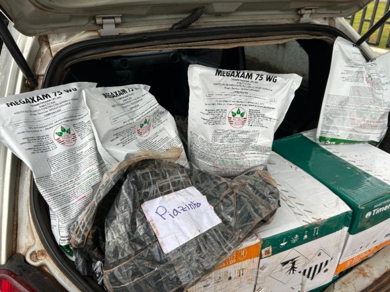 Em um segundo veículo, localizado próximo ao primeiro, foram encontrados agrotóxicos contrabandeados, também provenientes do Paraguai. Um indivíduo que realizava o transbordo da carga fugiu para uma área de mata.