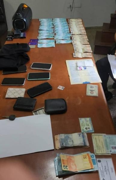 Parte do dinheiro falso foi localizada com um dos abordados, enquanto o restante foi encontrado no interior do automóvel. Após a abordagem, os envolvidos foram encaminhados à unidade policial, onde, já na delegacia, também foi apreendido o dinheiro verdadeiro que estava em posse do grupo.