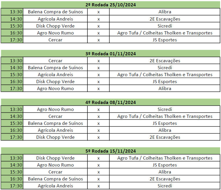 A competição segue sempre aos sábados, com cinco jogos por tarde. Os jogos das próximas rodadas são os seguintes:
