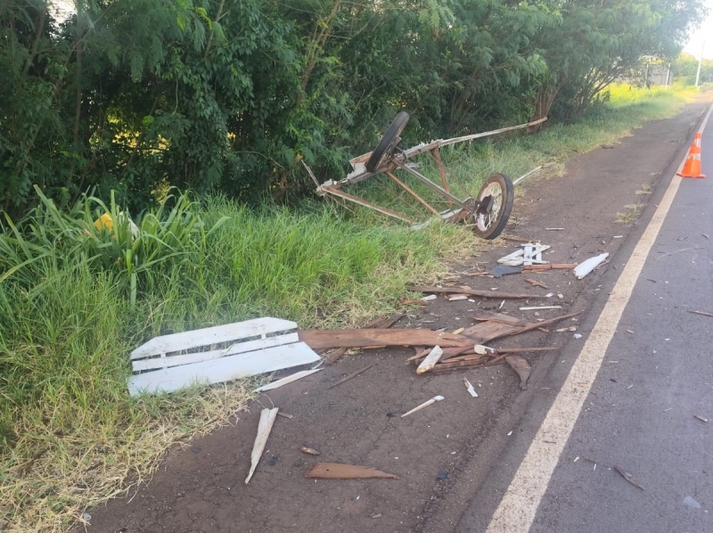 O atendimento da ocorrência foi realizado pela Polícia Rodoviária Estadual. A carroça ficou destruída com o acidente. Não há informações sobre o animal que tracionava o veículo.
