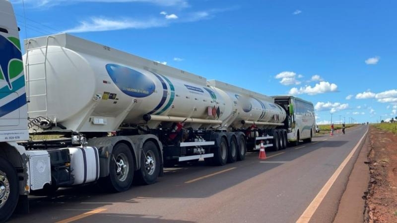 De acordo com as informações, o ônibus acabou colidindo na traseira do caminhão-tanque. No momento do acidente, havia trabalhadores no interior do coletivo, o que mobilizou equipes de atendimento.