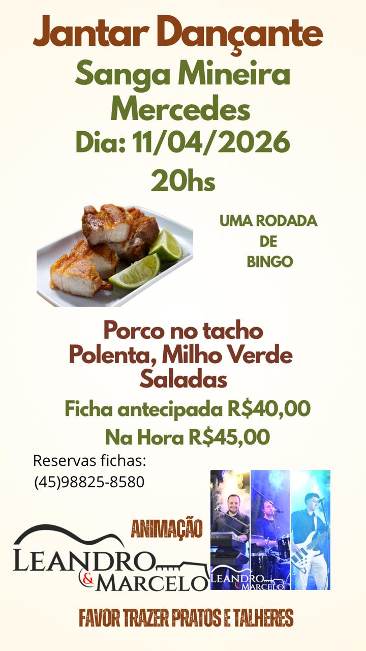 Além da programação gastronômica, o evento contará com animação da dupla Leandro & Marcelo, garantindo música ao vivo para embalar a noite. Também está prevista uma rodada de bingo, ampliando as atrações para os participantes.