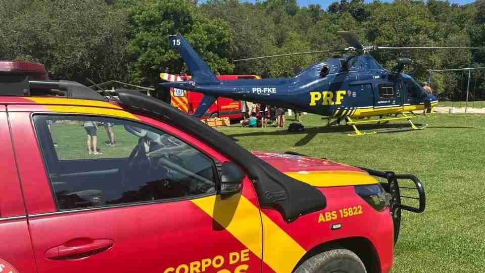 Menino de três anos foi resgatado na tarde deste sábado (07) pelo Núcleo de Operações Aéreas da PRF, em conjunto com SAMU e SIATE, em Bocaiúva do Sul (PR).