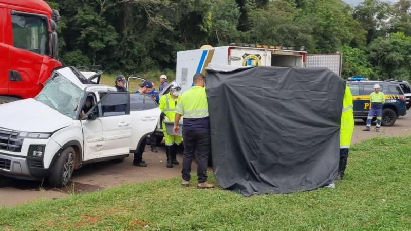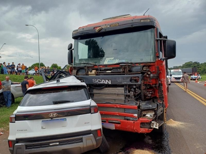 De acordo com o Corpo de Bombeiros, o Creta realizou uma manobra para acessar o município de Céu Azul quando foi atingido por uma carreta que transitava no sentido Foz do Iguaçu. O impacto foi violento e, após a colisão, o veículo ficou cravado na parte frontal da carreta e foi arrastado por vários metros.